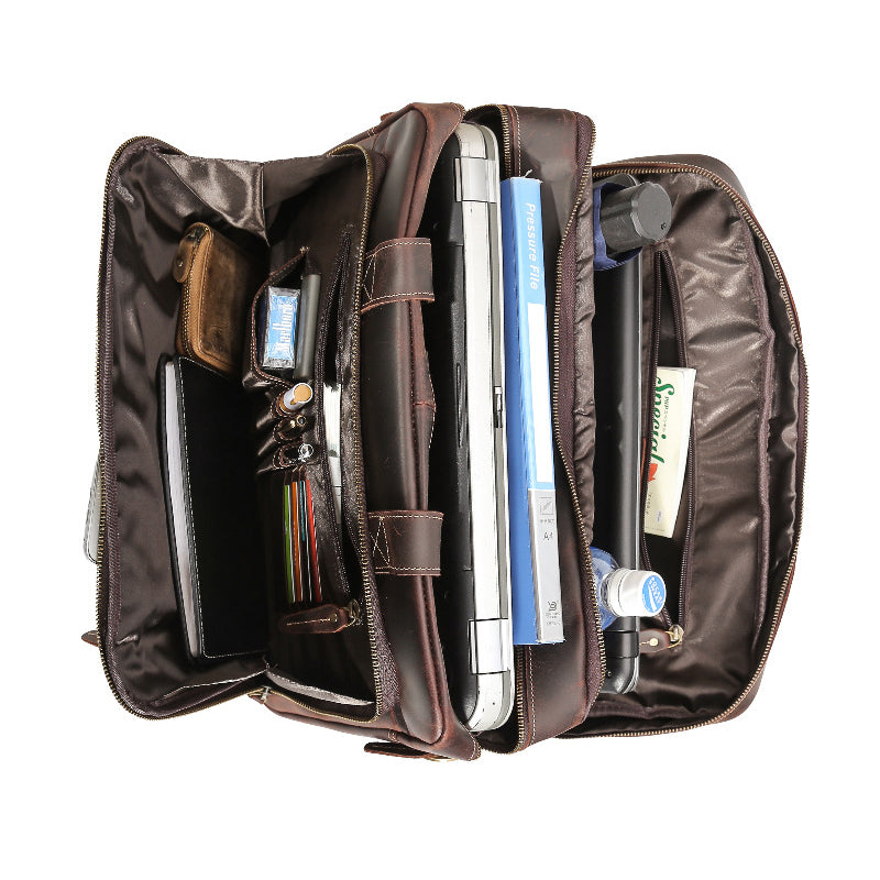 Crazy Horse Leather Briefcase Retro Men Tote Bag Business Shoulder Messenger Bag
