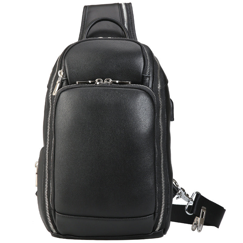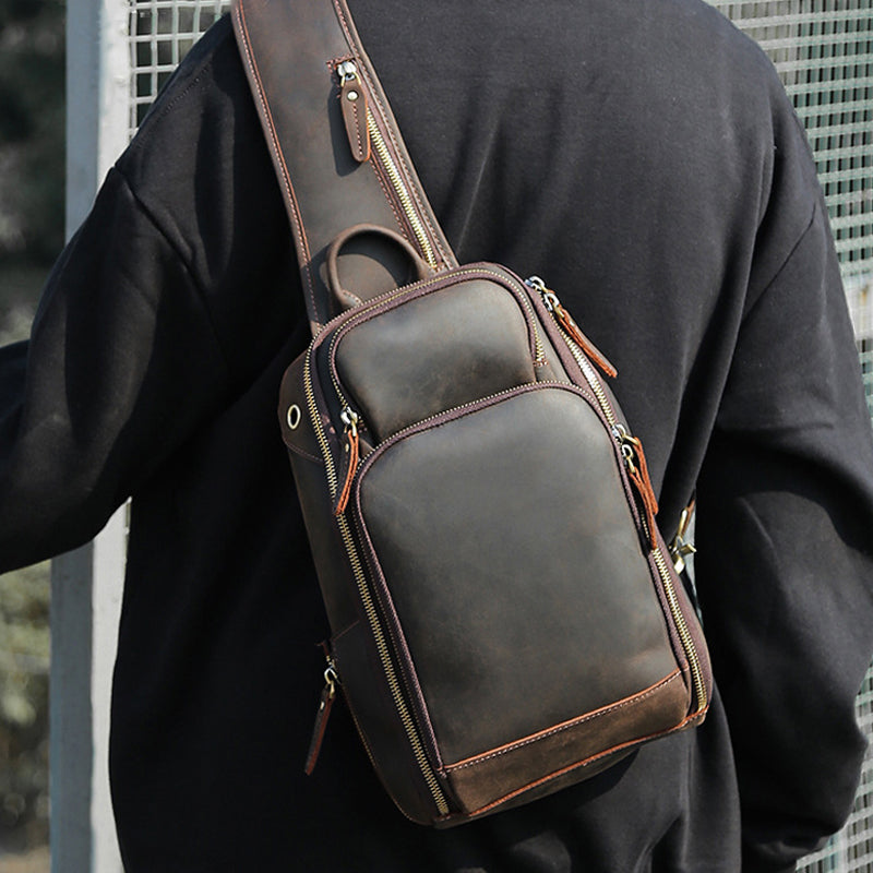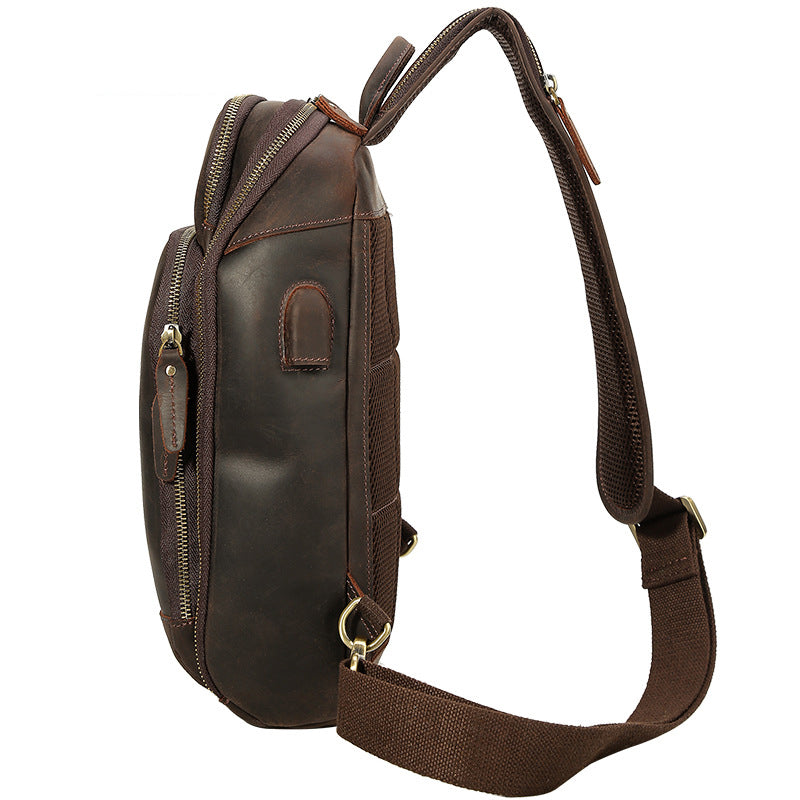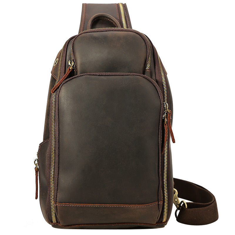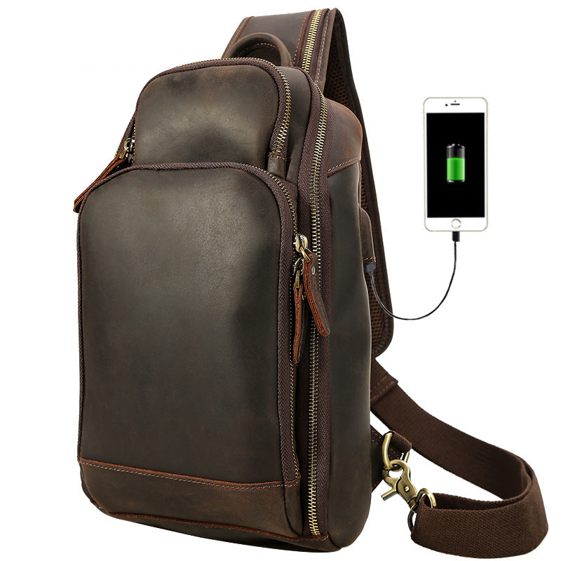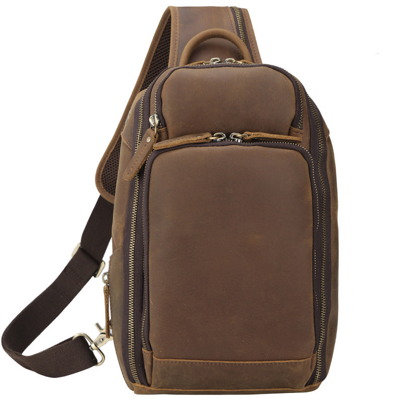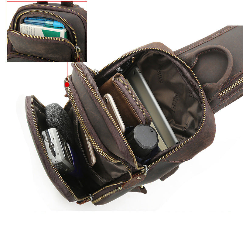 Crazy Horse Leather Chest Pack Men Shoulder Messenger Bag Retro Chest Bag