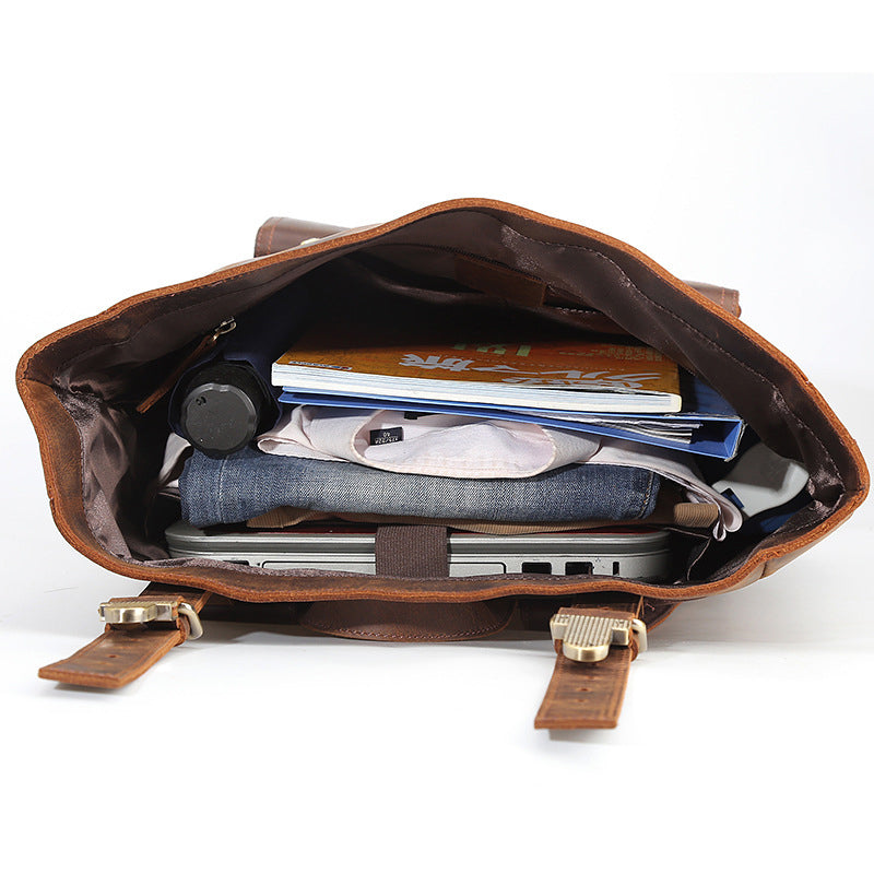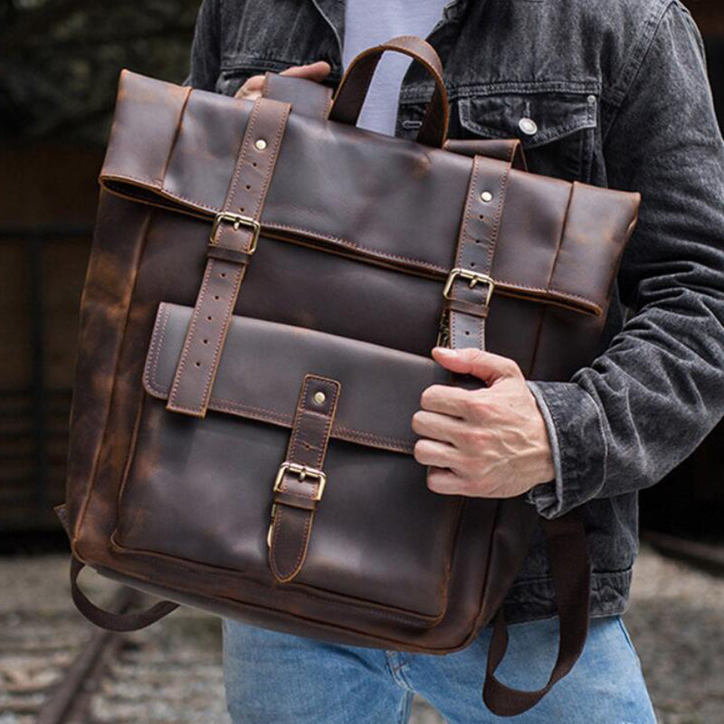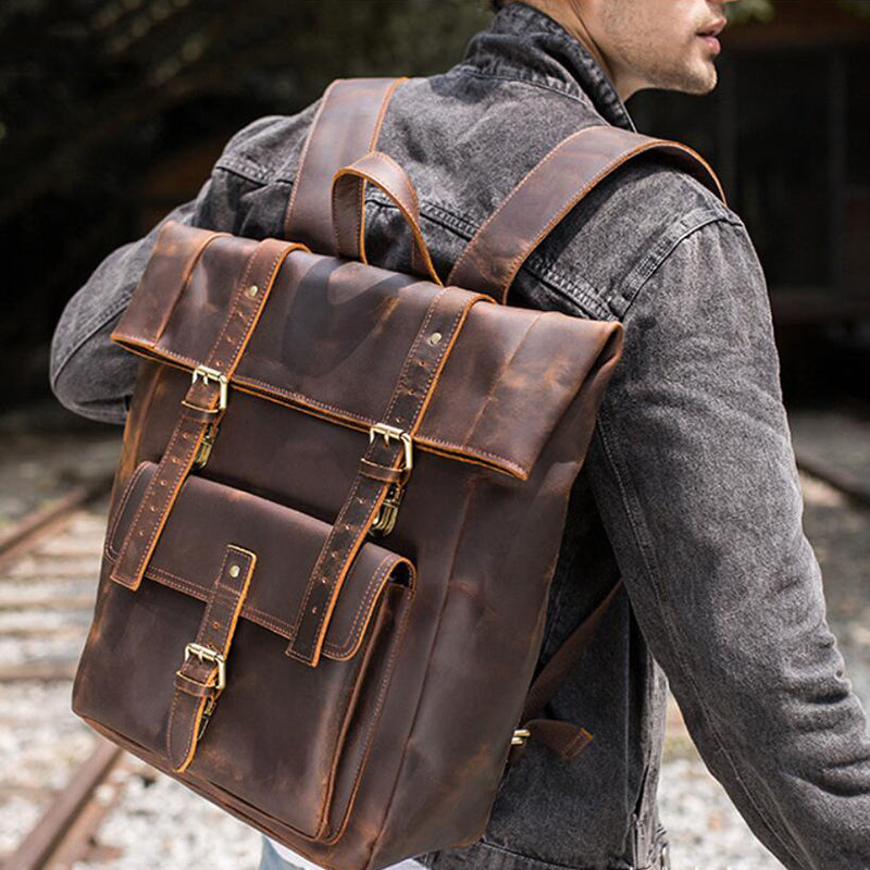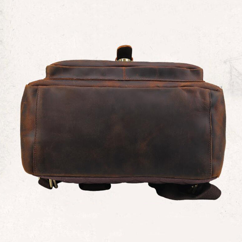 Crazy Horse Leather Men Backpack Laptop Backpack Large Travel Backpack