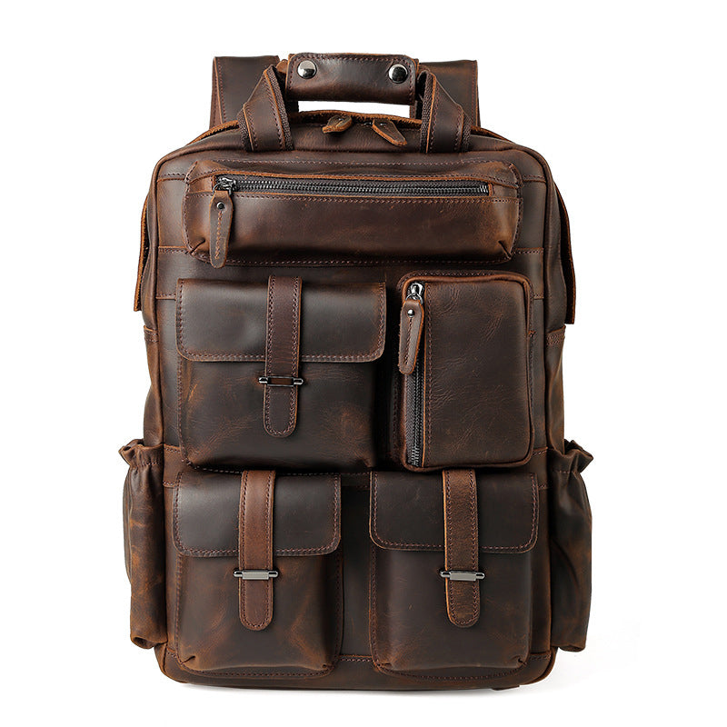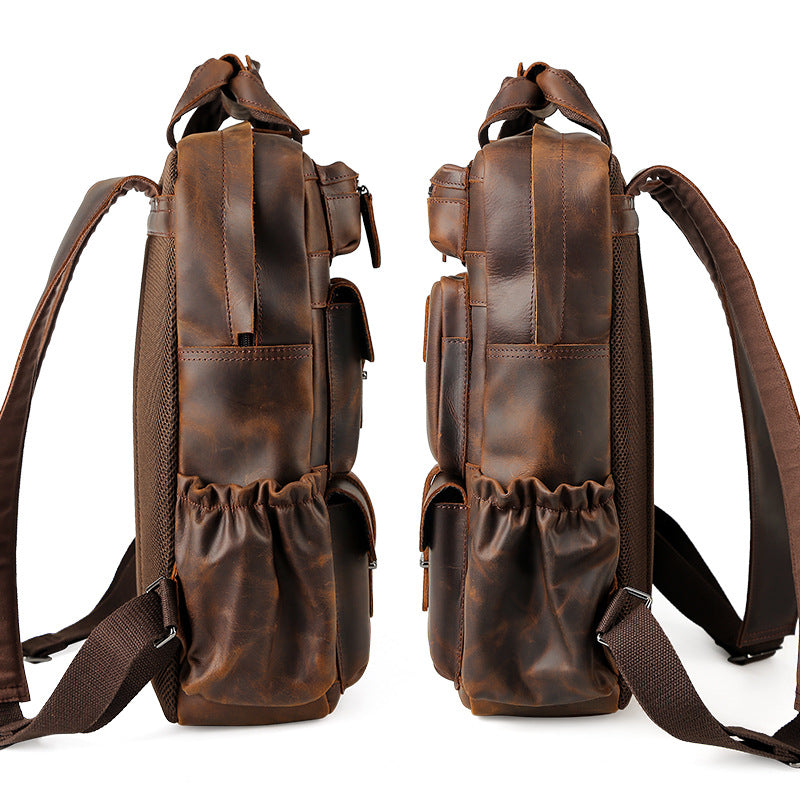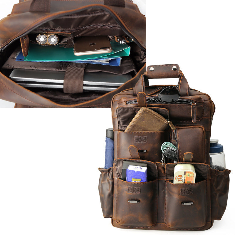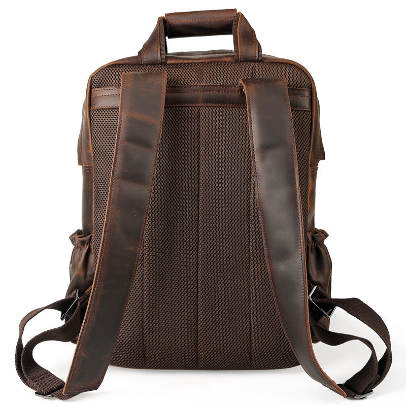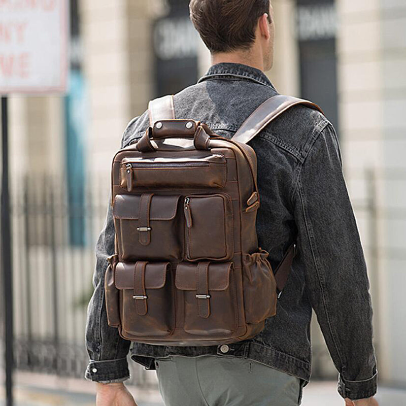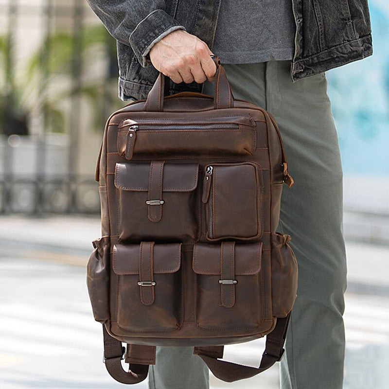 Men Travel Backpack Crazy Horse Leather Laptop Backpack Large Capacity School Backpack