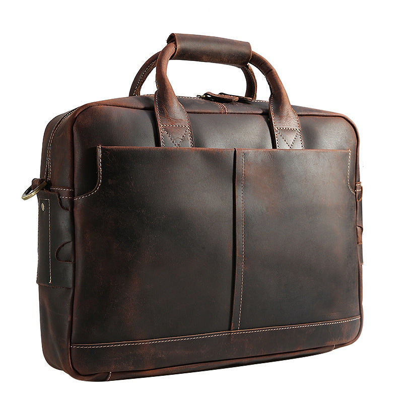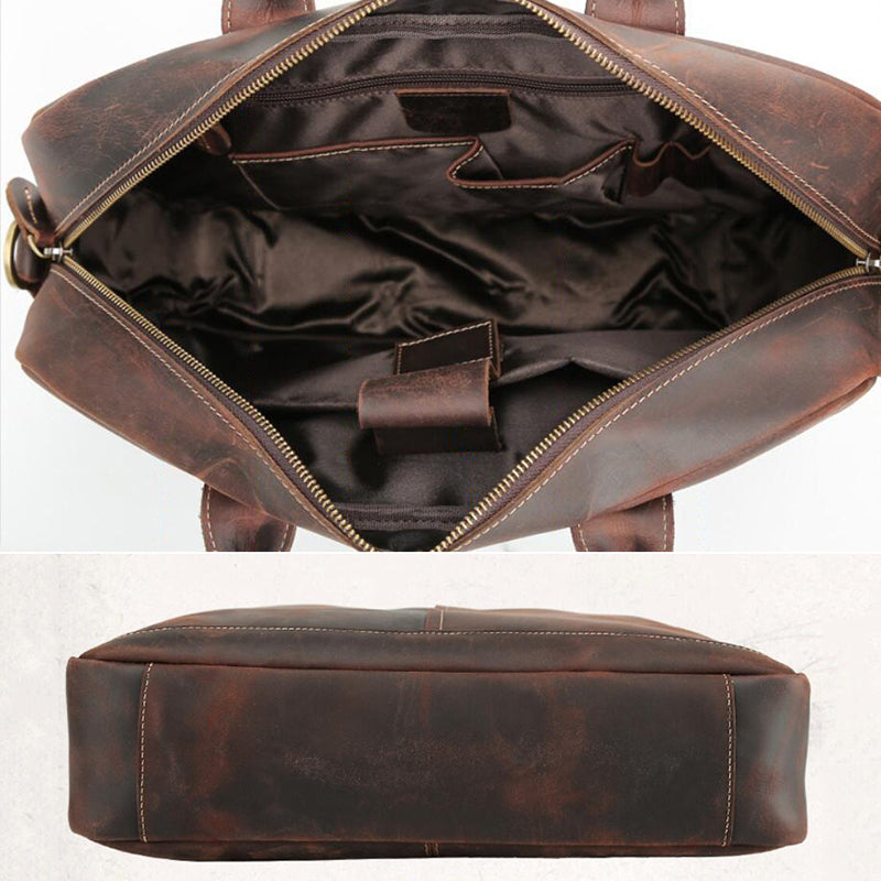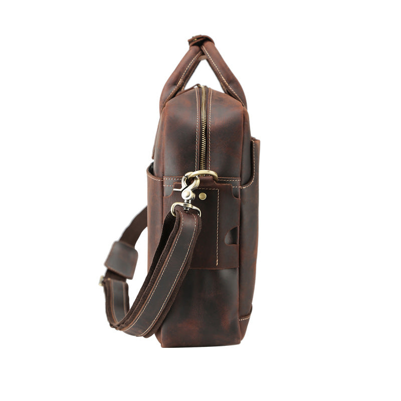 Retro Men Briefcase Crazy Horse Leather Shoulder Messenger Bag Laptop Bag Men Handbag